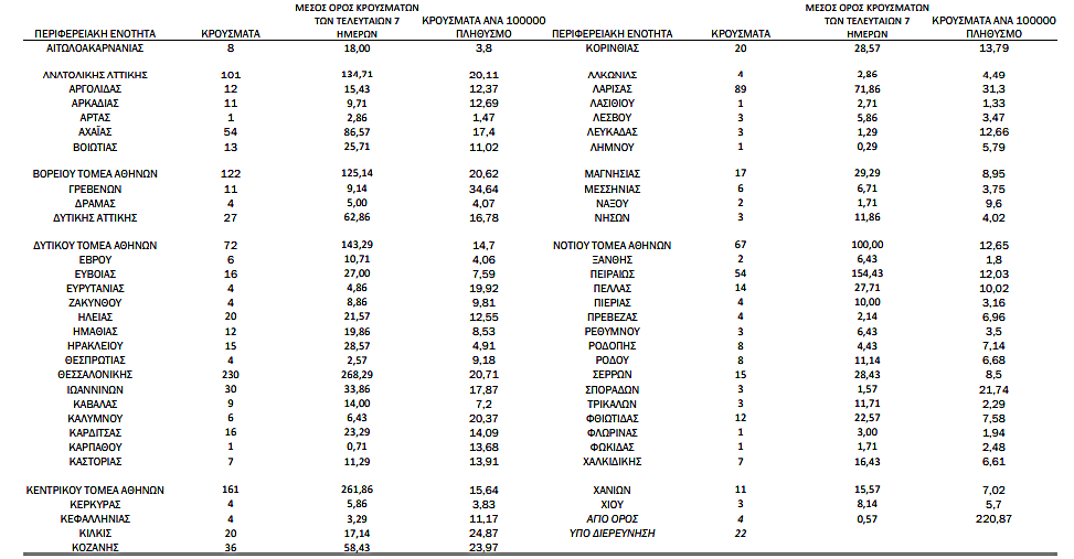 Στα 1.449 τα νέα κρούσματα, 54 νεκροί και 735 διασωληνωμένοι – Γεωγραφική κατανομή