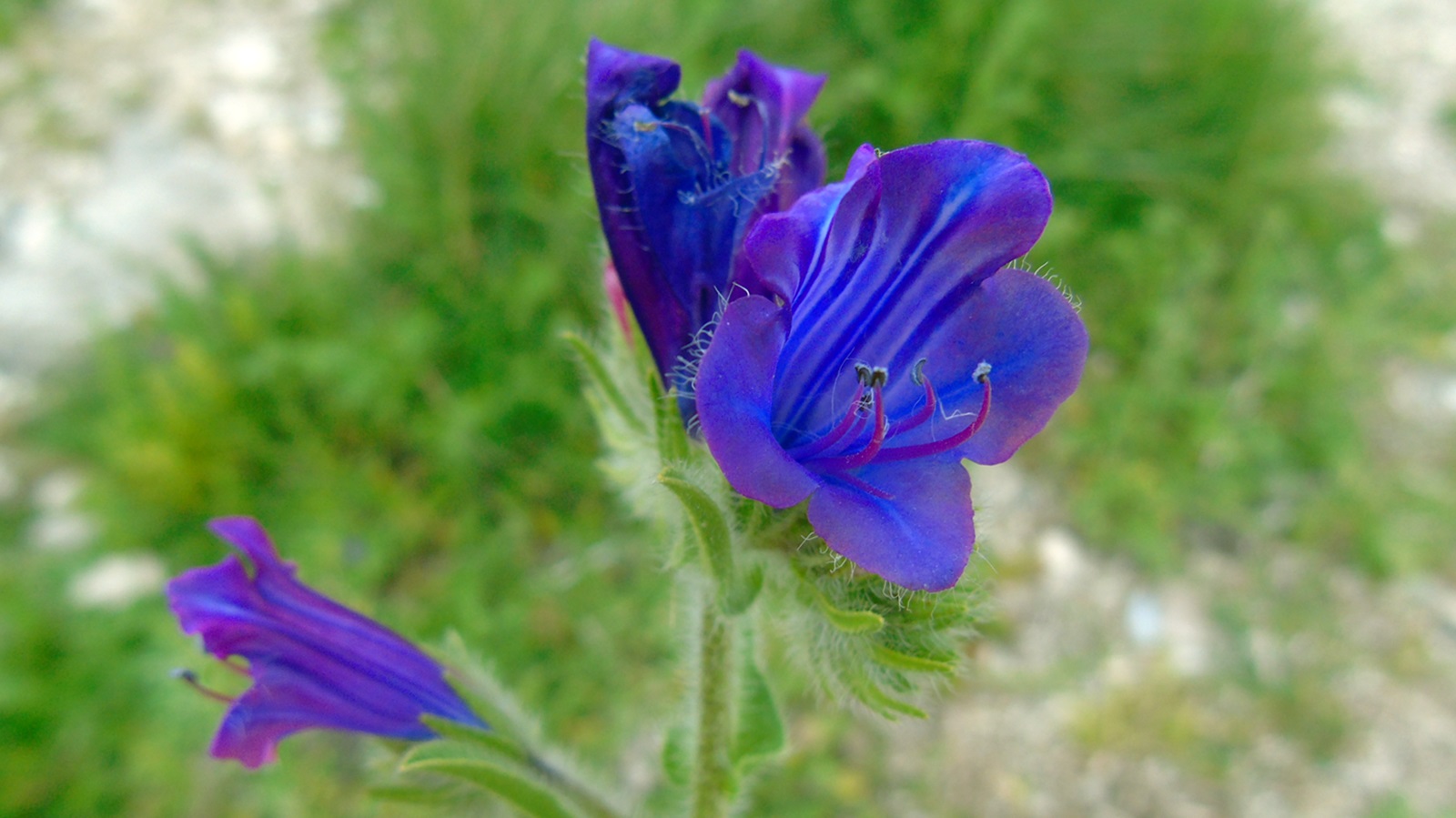 Έχιο το αρνογλωσσοειδές (Echium plantagineum), κοινώς βοϊδόγλωσσα, σε παραλία της Νικιάνας