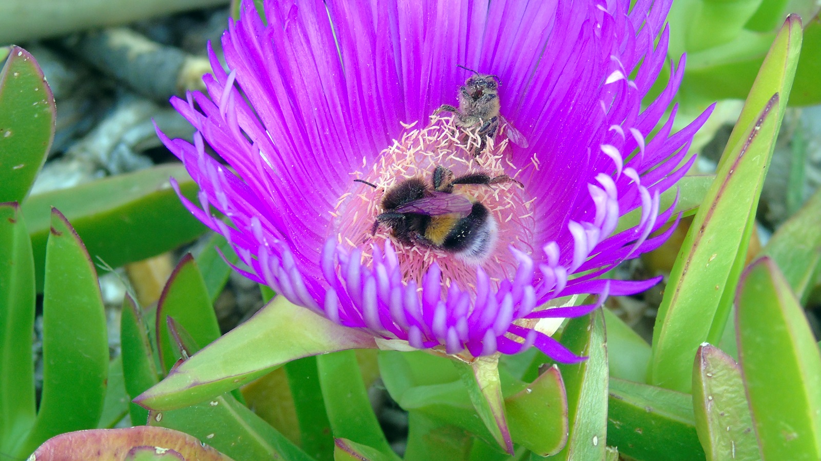 Είναι σαν να λέμε «έσκασε» από το φαγητό, αν και σε κάτι άλλο θα πρέπει να οφείλεται ο θάνατος του εντόμου αυτού, μάλλον μέλισσας, μέσα στο «κύπελλο» ενός Μεσημβριάνθεμου.