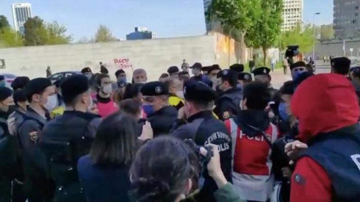 Οι διαδηλωτές κατευθύνοντας προς το μνημείο που βρίσκεται στην πλατεία Ταξίμ για να καταθέσουν στεφάνια και γαρίφαλα. Δυνάμεις της αστυνομίας τους μπλόκαραν και στη συνέχεια άρχισαν οι συλλήψεις.
