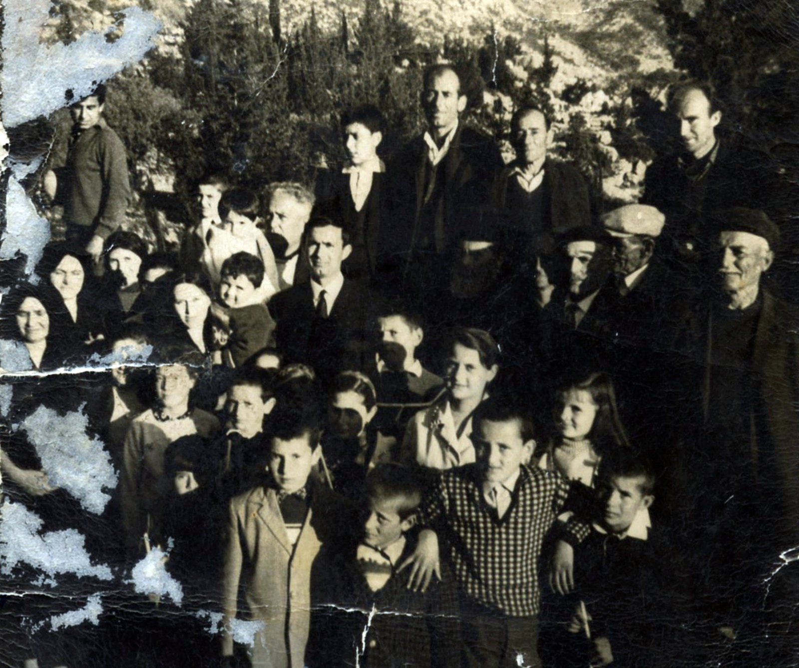Στη τρίτη σειρά από αριστερά: μια γυναίκα που δεν διακρίνεται καλά κι ακολουθεί η Κατερίνα Δαμιανή που κρατά στην αγκαλιά της το γιο της Σπύρο.