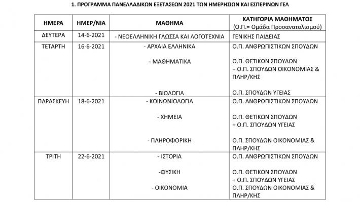 Ανακοινώθηκε το πρόγραμμα των πανελλαδικών εξετάσεων 2021