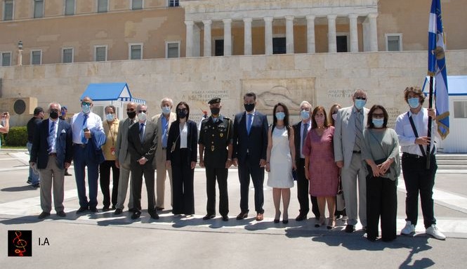 Για την Συνομοσπονδία στεφάνι κατέθεσε ο Β’ Αντιπρόεδρος και εκπρόσωπος των Παξών κύριος Ιωάννης Δήμας, ενώ ακολούθησε κατάθεση στεφάνου από τον Αντιπεριφερειάρχη Κεντρικού Τομέα Περιφέρειας Αττικής κύριο Γεώργιο Δημόπουλο εκ μέρους του Περιφερειάρχη Αττικής κυρίου Γεωργίου Πατούλη, από την κυρία Νίκη Αραμπατζή Πρόεδρο του Δημοτικού Ραδιοφώνου 9,84 εκ μέρους του Δημάρχου Αθηναίων κυρίου Κώστα Μπακογιάννη και από τον Υποστράτηγο ΓΕΕΘΑ κύριο Σπυρίδωνα Γιαννακάκη Διευθυντή Νομικής Υπηρεσίας εκ μέρους του Αρχηγού ΓΕΕΘΑ Στρατηγού κυρίου Κωνσταντίνου Φλώρου.