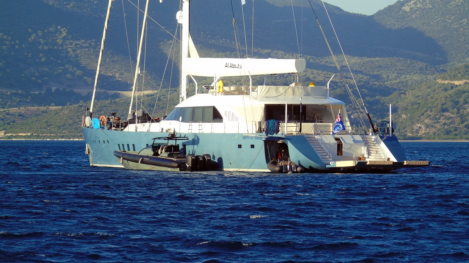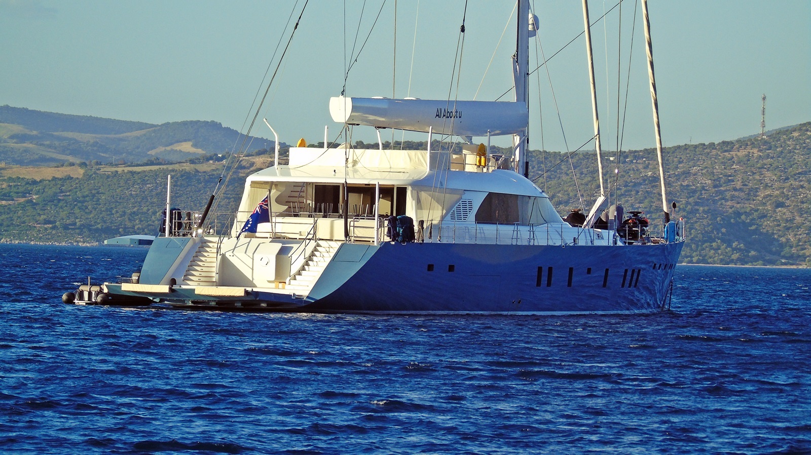 Το πολυτελές γιοτ «All About U» είχε ρίξει άγκυρα σήμερα το απόγευμα ανοιχτά του κολπίσκου της Νικιάνας, στο ύψος του λιμανιού. Εντύπωση μας έκανε το πανύψηλο κατάρτι του.