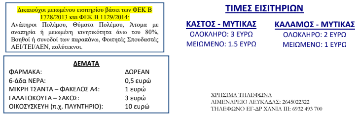 Τα δρομολόγια στη γραμμή Καστός-Κάλαμος-Μύτικας και επιστροφή από 07.06.2021 έως 30.06.2021 | Λευκαδίτικα Νέα - Lefkada News