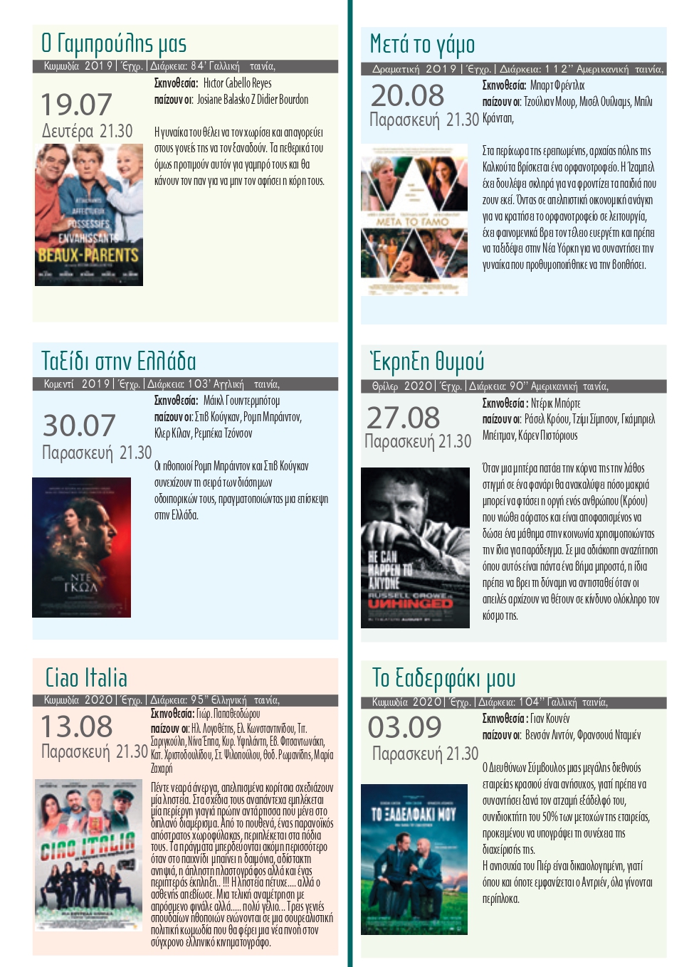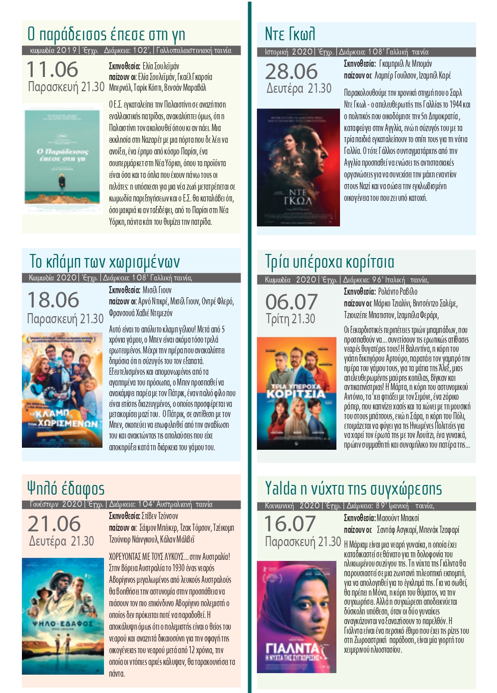 Το πρόγραμμα των προβολών έχει ως εξής: