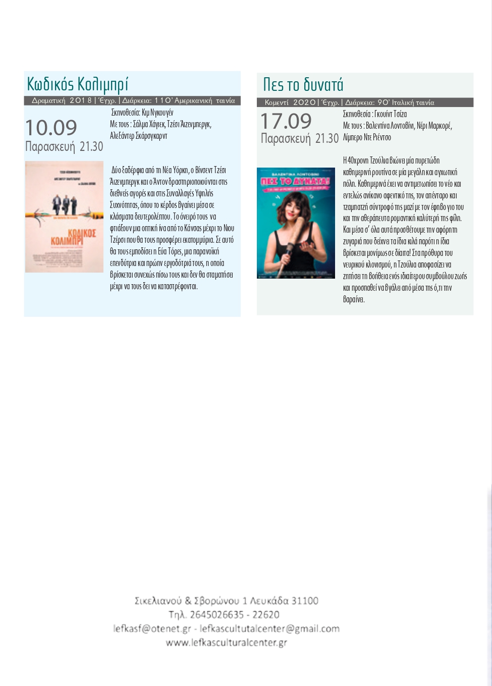 Το Πνευματικό Κέντρο του Δήμου Λευκάδας διοργανώνει κινηματογραφικές προβολές στο Κηποθέατρο «Άγγελος Σικελιανός» επαναφέροντας έτσι στην πόλη της Λευκάδας, την αγαπημένη συνήθεια του θερινού σινεμά.