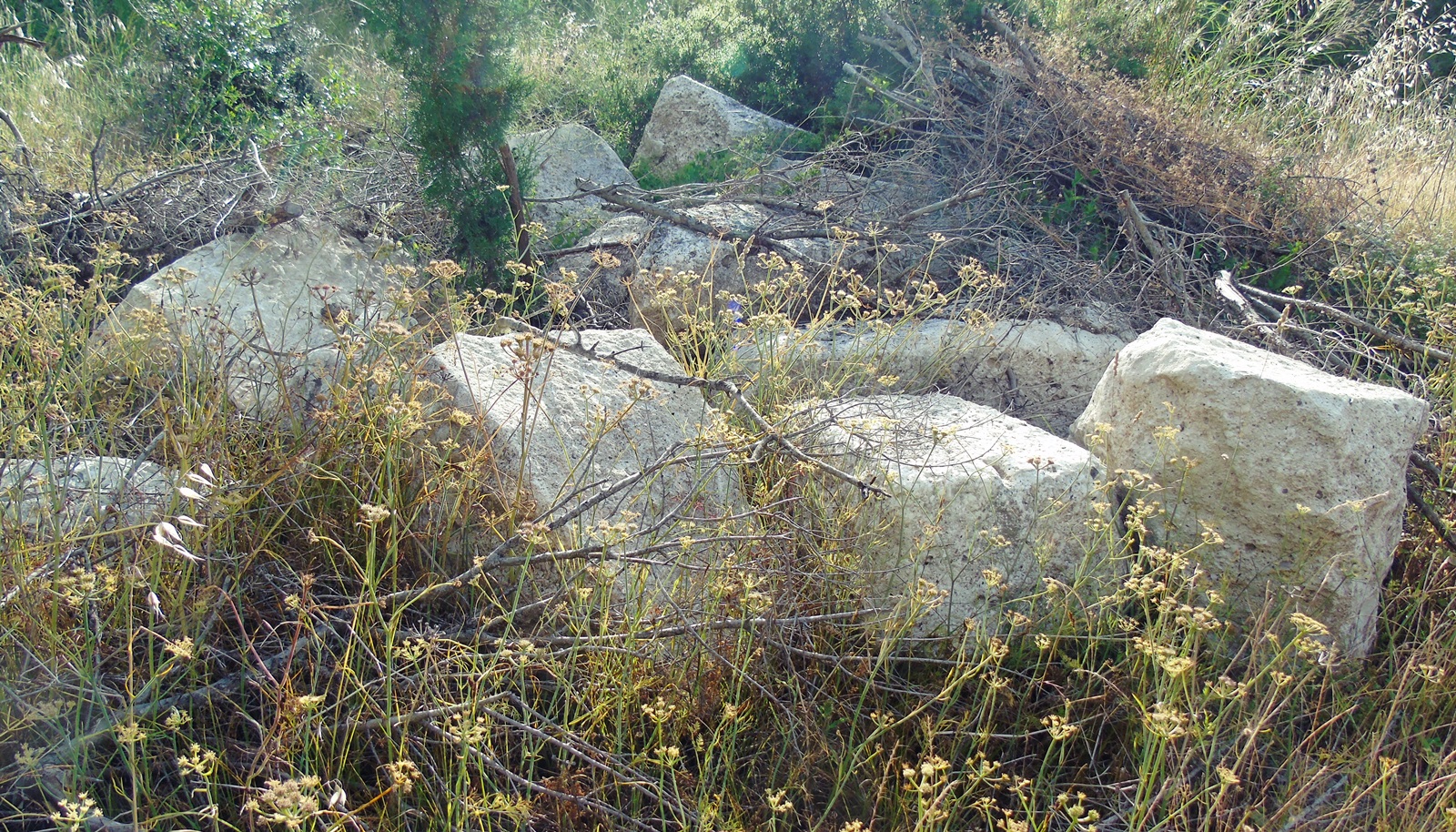 Οι μεγάλες λαξευμένες από ανθρώπινο χέρι ορθογώνιες στην πλειοψηφία τους πέτρες με λεία την επιφάνεια βρίσκονται στην άκρη ενός χωραφιού. Το μέρος αυτό είναι σε ένα λόφο που καλλιεργούταν παλιότερα.