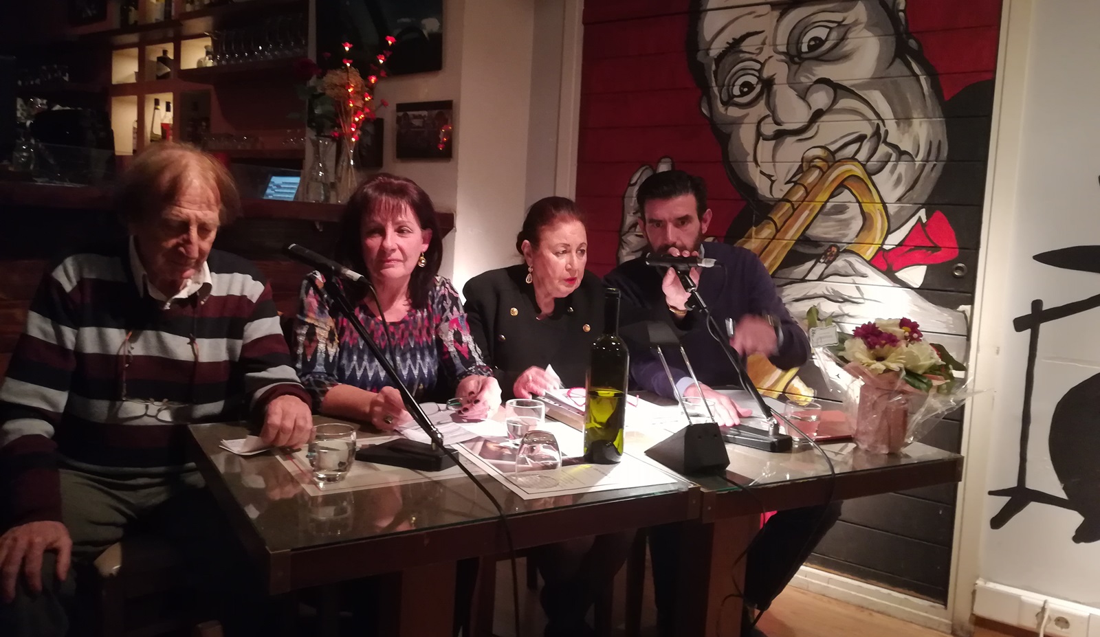 ΣΗΜΕΙΩΣΗ: Στη φωτογραφία διακρίνονται: ο Λευκαδίτης ποιητής Στέφανος Μεσσήνης (έφυγε πρόσφατα), η Κατερίνα Λιβιτσάνου, η Λευκαδίτισσα εκπαιδευτικός Αργυρώ Βερυκίου και ο φιλόλογος Παναγιώτης Δεμέστιχας στην τελευταία παρουσίαση του βιβλίου «ΔΙΑΔΡΟΜΕΣ ΠΑΡΑΛΛΗΛΕΣ», που έγινε στην αίθουσα του Γαβριηλίδη το Νοέμβριο του 2018.