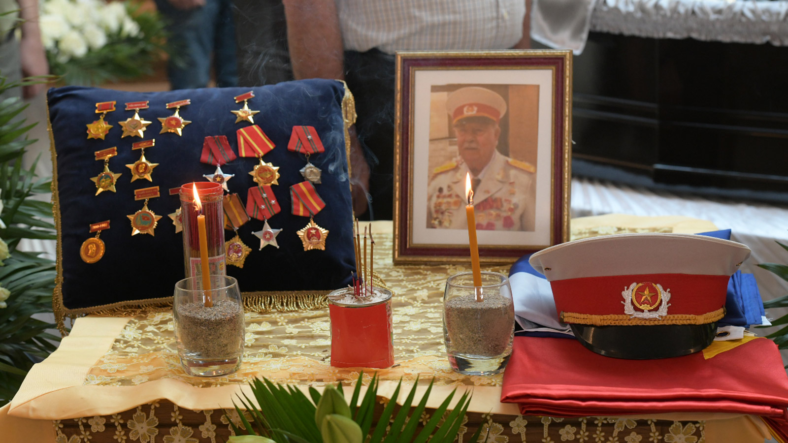Στον επικήδειο που εκφώνησε ο πρέσβης του Βιετνάμ εξήρε τη συμβολή του στον εθνικοαπελευθερωτικό αγώνα του βιετναμέζικου λαού, στη μετέπειτα ανάπτυξη της χώρας, αλλά και στην ανάπτυξη της φιλίας ανάμεσα στους δύο λαούς. Στο τέλος της ομιλίας, ζήτησε και κρατήθηκε ενός λεπτού σιγή από τους παρευρισκόμενους.