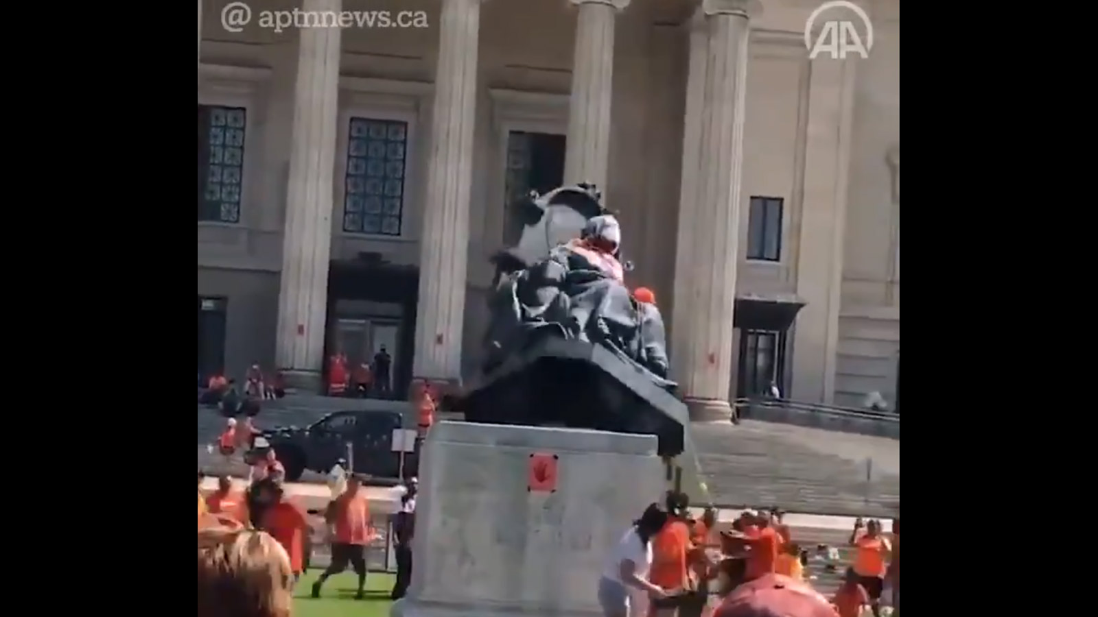 Στην πόλη του Γουίνιπεγκ, πλήθος διαδηλωτών πορεύτηκε σε κεντρικούς δρόμους, φωνάζοντας το σύνθημα «δεν υπάρχει περηφάνεια για τη γενοκτονία», ενώ στη συνέχεια ορισμένοι από αυτούς γκρέμισαν τα αγάλματα των δύο βασιλισσών.
