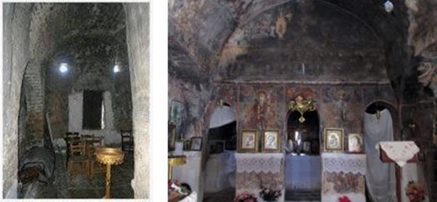 Εικ. 12. Μερική άποψη του Νάρθηκα (νοτιοδυτικά). Εικ. 13, ο κυρίως ναός και το ιερό.