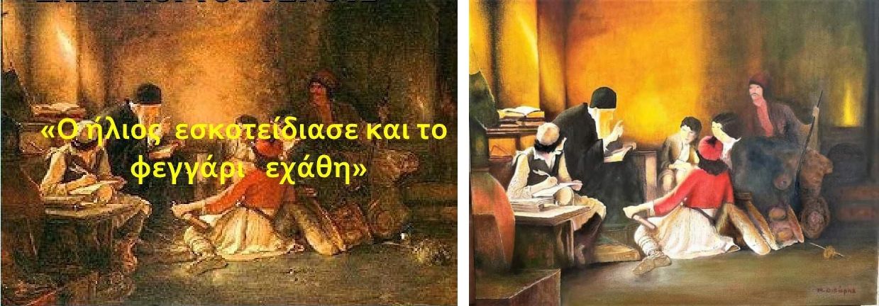 Η κατάκτηση της Ελλάδας από τους Οθωμανούς Τούρκους είχε ως συνέπεια την αιφνίδια διακοπή και της πνευματικής ζωής του Ελληνισμού γενικά και ειδικά της εκπαιδευτικής ζωής του. Kατά την ιστορική προσέγγιση του Ιάκωβου Ρίζου-Νερουλού, 1826, «στα πρώτα χρόνια της σκλαβιάς, οι Τούρκοι απαγόρευσαν τη μετάδοση της γνώσης μέσα από οργανωμένα σχολεία, γιατί φοβόταν μήπως οι δούλοι τους γίνουν δυσκολοκυβέρνητοι και επικίνδυνοι»1. Άλλωστε, την περίοδο αυτή οι μορφωμένοι ήταν ελάχιστοι ή δεν υπήρχαν, αφού είχαν μεταναστεύσει στην Ευρώπη, και οι απλοί άνθρωποι ήταν βουτηγμένοι στο σκοτάδι της αμάθειας και τις δεισιδαιμονίες.2 Σ΄ αυτές τις συνθήκες οι ψυχές κλείστηκαν ερμητικά, τα στόματα βουβάθηκαν, ο τόπος αγρίεψε, τα τραγούδια και τα γιορτάσια σβήστηκαν, τα «Τουρκομνήματα» γέμισαν αλλαξόπιστους κι ένας αέρας πνιγερός μόλυνε τα στήθια των ανθρώπων. Κι αυτή την τραγική για το γένος κατάσταση ο λαός την τραγουδούσε με τους στίχους: «Ο ήλιος εσκοτείδιασε και το φεγγάρι εχάθη…».3