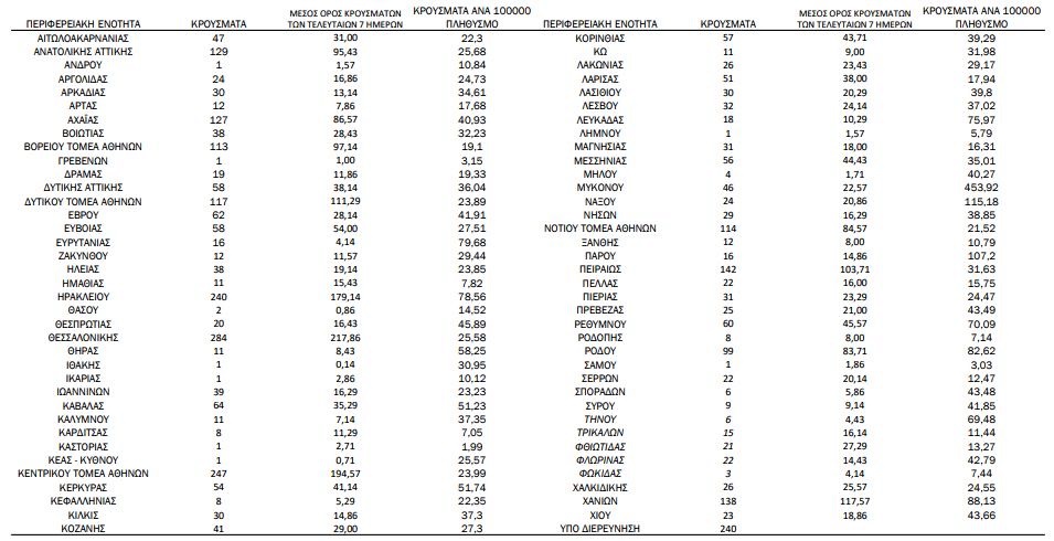 Στα 3.475 τα νέα κρούσματα, 19 νέοι θάνατοι, 226 διασωληνωμένοι – Γεωγραφική κατανομή