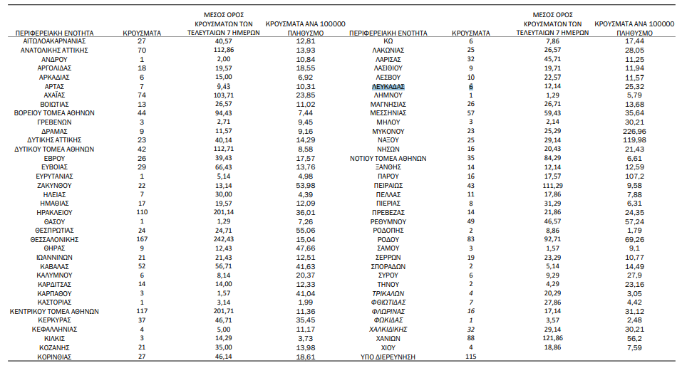 Έξι νέα κρούσματα του κορονοϊού καταγράφηκαν σήμερα Κυριακή 15 Αυγούστου 2021 στην ΠΕ Λευκάδας σύμφωνα με την ανακοίνωση του ΕΟΔΥ (Δεδομένα έως 15 Αυγούστου 2021, ώρα 15:00).