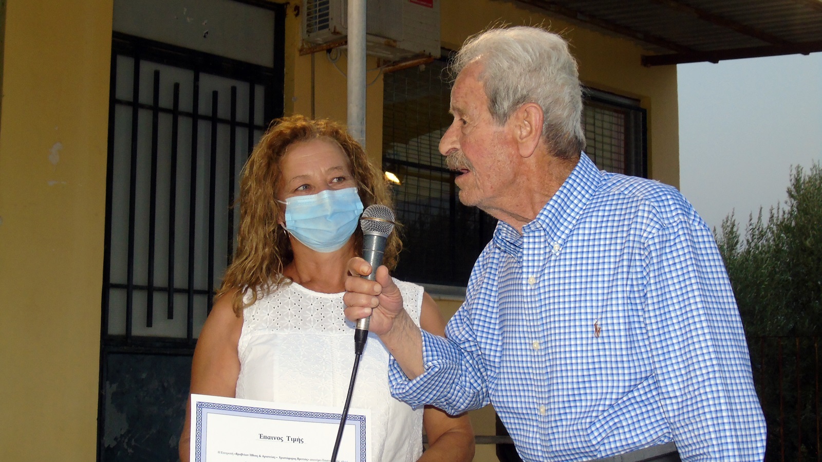 Η απονομή από τον Γεράσιμο Αραβανή του 1ου Βραβείου για το σχ. έτος 2020-2021 στην Βασιλική Γαζή