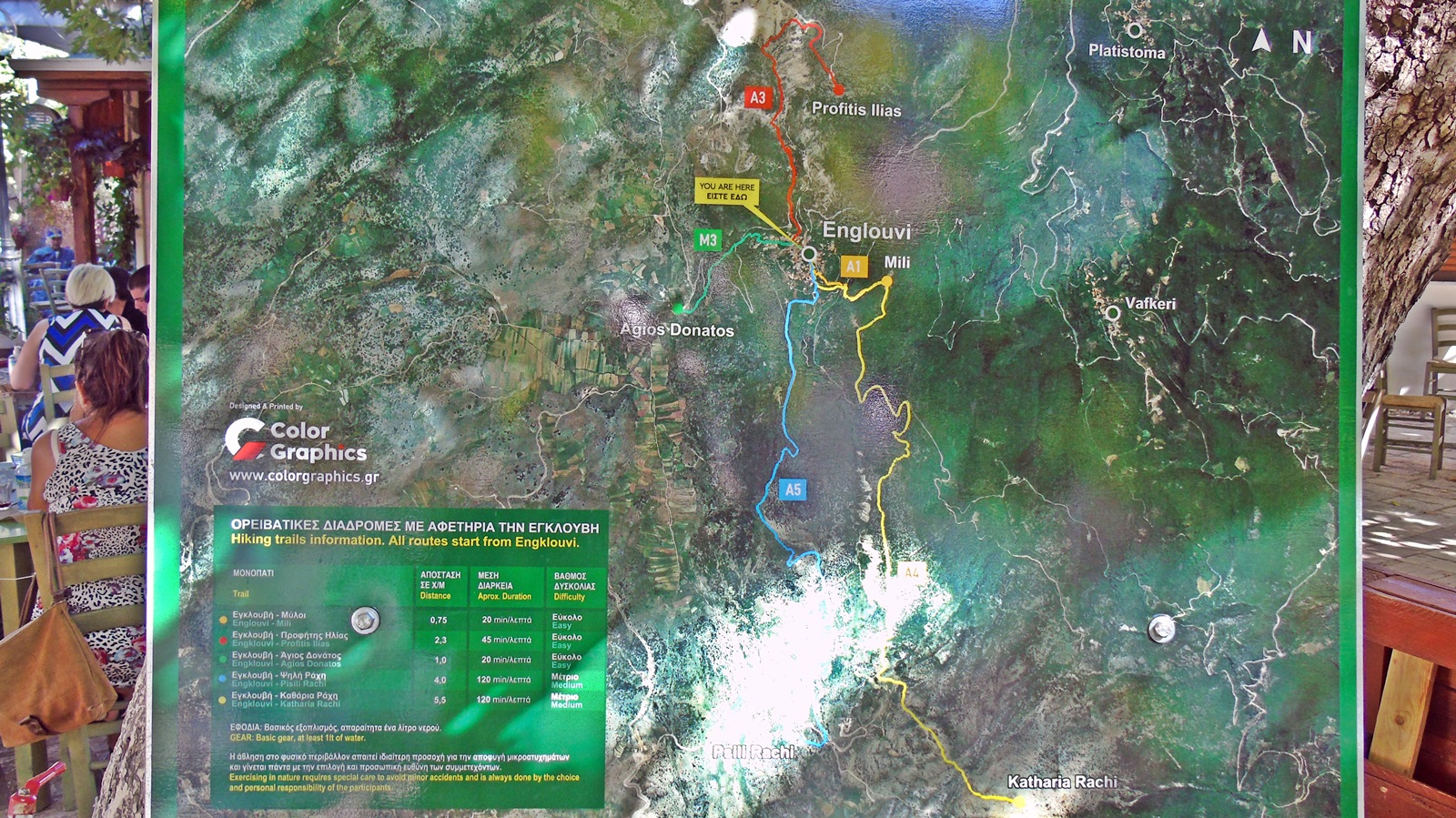 Αφετηρία και τερματισμός των δύο διαδρομών είναι η κεντρική πλατεία της Εγκλουβής, δίπλα από τον πλάτανο και τα παραδοσιακά καφε-εστιατόρια.