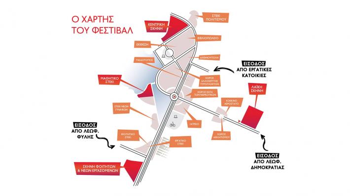xartisΟ χάρτης της κόκκινης πολιτείας του 47ου Φεστιβάλ ΚΝΕ – «Οδηγητή» στο Πάρκο Τρίτση