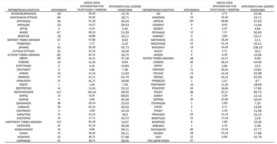 Στα 2.422 τα νέα κρούσματα, 37 θάνατοι, 364 διασωληνωμένοι – Γεωγραφική κατανομή