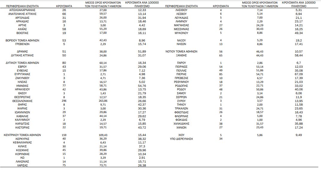 Στα 2.190 τα νέα κρούσματα, 37 θάνατοι, 348 διασωληνωμένοι – Γεωγραφική κατανομή