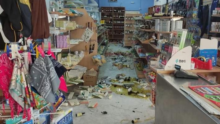 Ζημιές καταγράφονται σε σούπερ μάρκετ όπου προϊόντα έχουν πέσει από τα ράφια.
