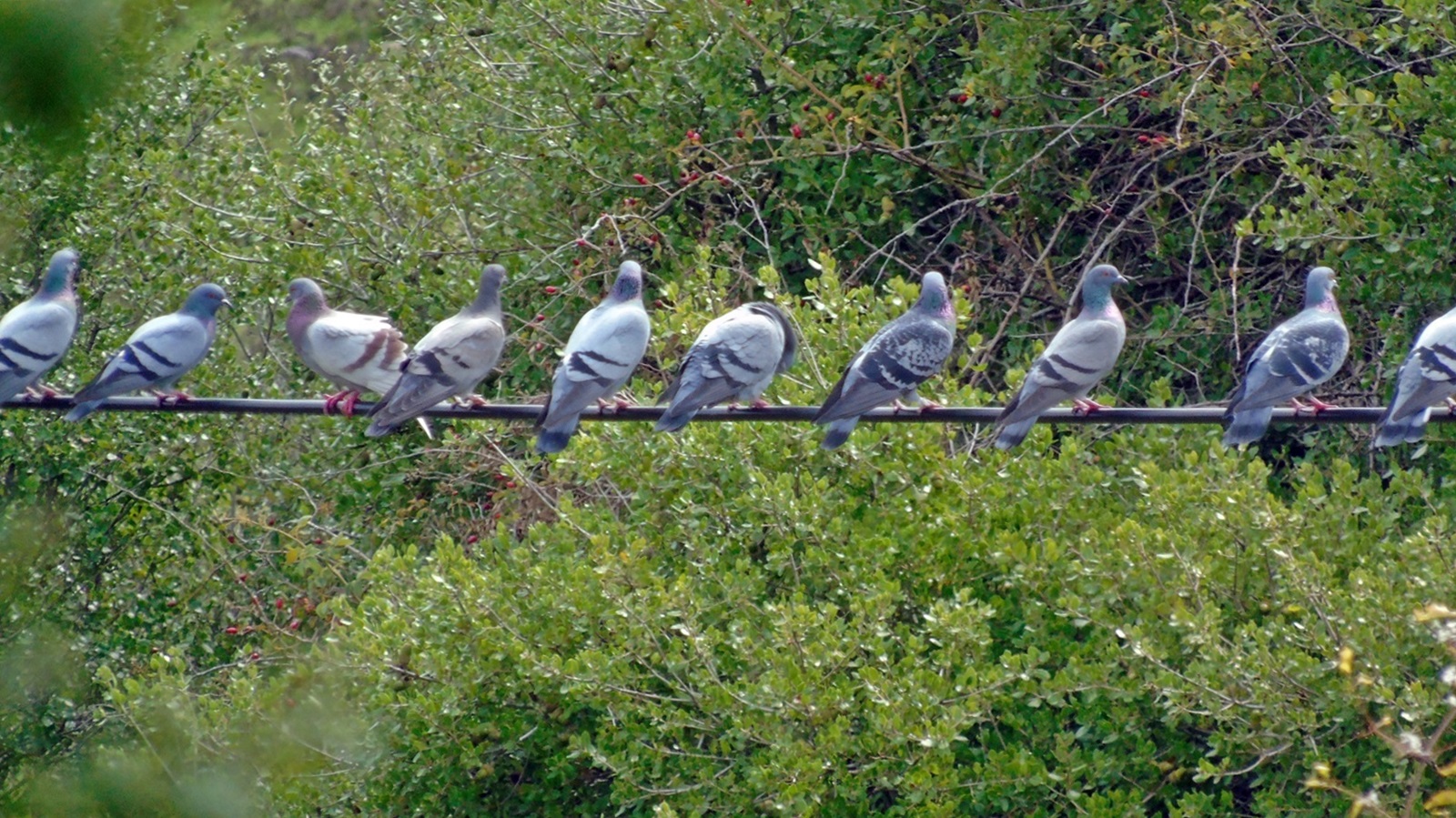 Αγαπητε Φιλλιπα ειναι ημεροπεριστερα προσεξε το ενα που εχει διαφορετικο χρωμα και τα αγριοπεριστερα δεν καθοντα ποτε σε καλωδια μονο στο χωμα σε βραχια η σε δενδρα.
