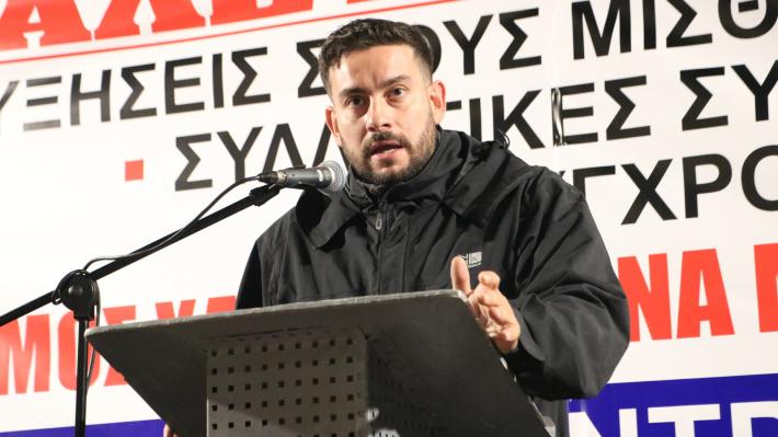 Πριν προλάβει να ολοκληρώσει τα λόγια του το σύνθημα «χωρίς εσένα γρανάζι δεν γυρνά, εργάτη μπορείς χωρίς αφεντικά» δόνησε την ατμόσφαιρα.