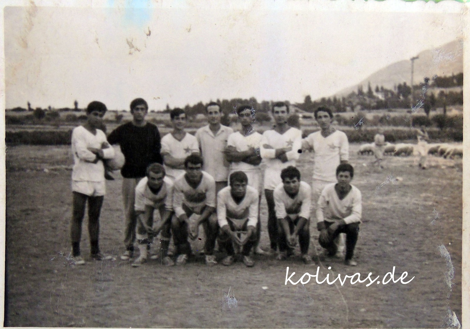 Η φωτογραφία θα πρέπει να έχει ληφθεί την δεκαετία του 1970, μάλλον στο Λιβάδι, που ήταν και το κύριο γήπεδο την εποχή εκείνη (υπήρχαν ακόμη εφεδρικά γήπεδα στα Σουντιάτα, στα δεξιά του δρόμου προς την Παναγία, και στη Βάλτα). Εικονίζεται όλη η ενδεκάδα μαζί με τον προπονητή-μάνατζερ της ομάδας ενόψει, μάλλον, κάποιου αγώνα. Σημειωτέον ότι η ποδοσφαιρική σεζόν ήταν οι μήνες του καλοκαιριού και οι αντίπαλοι ήταν τα γύρω χωριά Πλατύστομα, Βαυκερή, Εγκλουβή, Καρυά και τα χωριά του πρώην Δήμου Σφακιωτών. Στην όχι και τόσο καθαρή φωτογραφία διακρίνεται δεξιά στο βάθος ένα κοπάδι πρόβατα.
