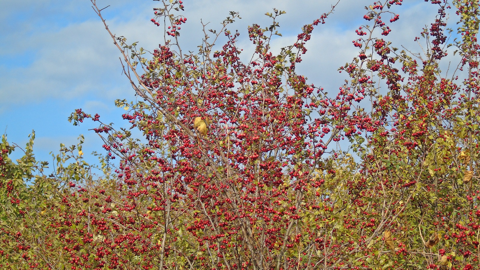 Οι καρποί αντιφέγγιζαν στον φθινοπωρινό ήλιο σαν μικρά κόκκινα λαμπιόνια χριστουγεννιάτικου δέντρου. Στο σημείο που τους φωτογραφίσαμε υπάρχουν πολλά μικρά δεντράκια, φορτωμένα την εποχή αυτή με καρπό. Βρίσκονται στα σύνορα χωραφιών που έχει εγκαταλειφθεί σήμερα η καλλιέργειά τους και σχηματίζουν πλέον μικρά δασάκια.