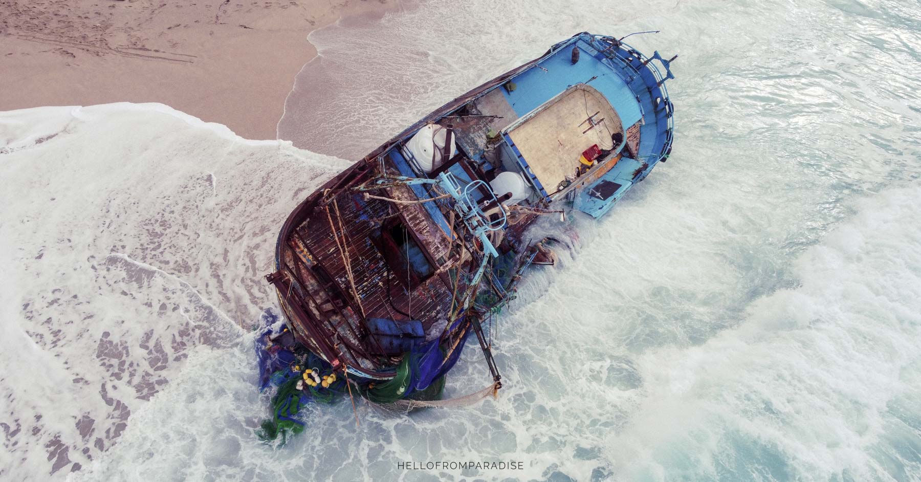 Με τη λέξη «δώρο», όπως θα καταλάβατε, αναφέρομαι στο αλιευτικό (ανεμότρατα) ναυάγιο άγνωστης προέλευσης και ιστορικού, το οποίο εκ πρώτης όψεως προέρχεται από κάποια Μεσογειακή αραβική χώρα -πιθανότατα την Τυνησία ή την Λιβύη- και το οποίο προφανώς παρέλαβε ο Νοτιάς από κάποια ακτή της Β. Αφρικής και αφού το «ταξίδεψε» σαν έρμαιο των κυμάτων του για πολλές εκατοντάδες μίλια, μας το έφερε και το εναπόθεσε στην πλαζ «Γάιδαρος» της περιοχής Καλαμιτσίου».