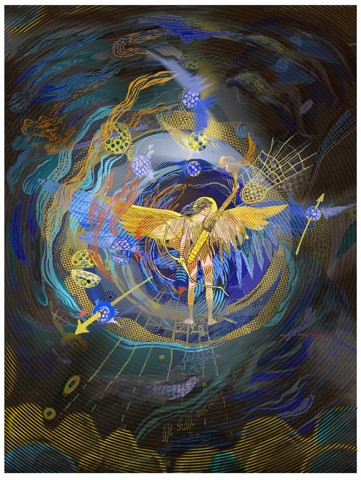 Η Φλωρεντία Οικονομίδου επιλέχθηκε της, με το έργο της “We will overcome”. Το έργο με τίτλο «We will overcome» (Fine Art archival print) είναι σχεδιασμένο στον υπολογιστή και τυπωμένο ψηφιακά. Η σύνθεσή της με υστερομεσαιωνικους υπαινιγμούς, αναφέρεται στη μάχη κατά του Covid-19 και πραγματεύεται την ισορροπία μεταξύ φωτός και σκότους, θετικού και αρνητικού χώρου.
