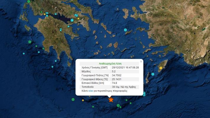 Κρήτη: Νέα δόνηση μεγέθους 5,3 Ρίχτερ έξω από την Άρβη