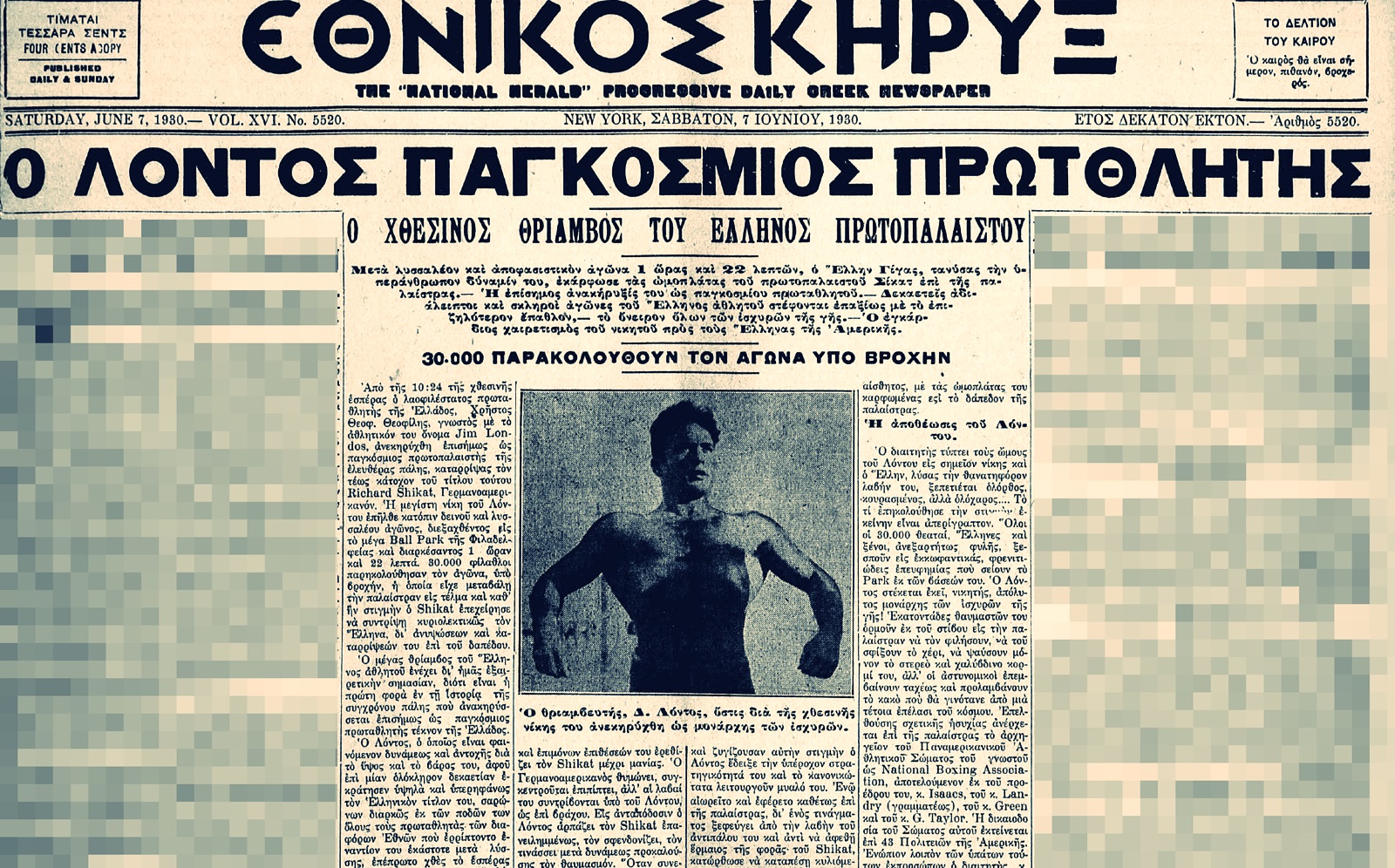 Σαν σήμερα το 1897 γεννήθηκε ο παγκόσμιος πρωταθλητής της πάλης βαρέων βαρών Τζιμ Λόντος (Χριστόφορος Θεοφίλου).