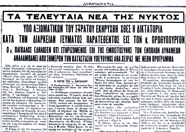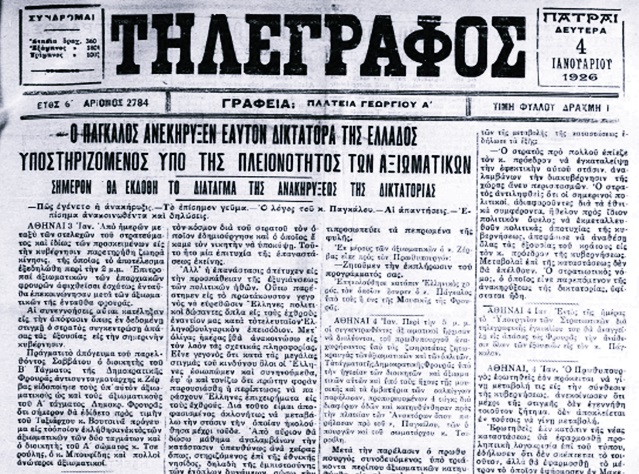 Σαν σήμερα το 1924 κηρύσσεται -και τυπικά πια- η παγκαλική δικτατορία.