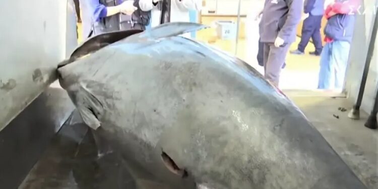 O ιχθυέμπορας της αγοράς του Ρέντη είπε ότι ο γιγάντιος τόνος θα διοχετευθεί στην ευρωπαϊκή αγορά