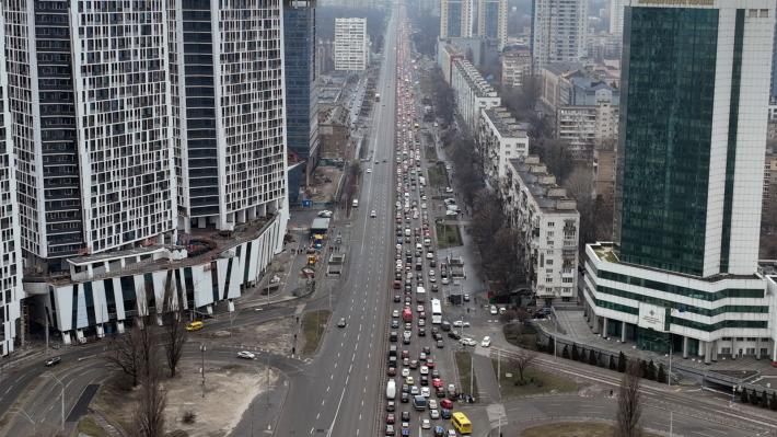Στο μετρό του Κιέβου υπήρχαν δεκάδες κάτοικοι που πήγαν εκεί είτε για να προστατευθούν είτε για να επιβιβαστούν σε κάποιο τρένο, με βαλίτσες και σάκους στα χέρια, για να φύγουν από την πόλη. Ουρές αυτοκινήτων έχουν σχηματιστεί στις εξόδους της πόλης.