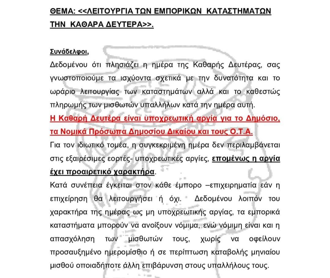 Για την «αργία» της Καθαράς Δευτέρας