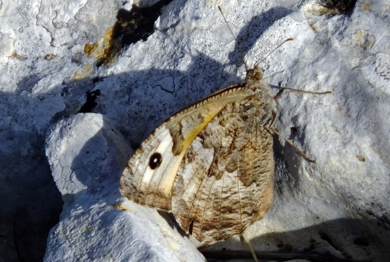 Την φωτογραφήσαμε κάποια χρονιά στην ορεινή Λευκάδα. Είναι μία από τις πεταλούδες που απαντώνται στον τόπο μας και η επιστημονική της ονομασία είναι, μάλλον, Hipparchia sp., σύμφωνα με τον κ. Ανδρέα Ανδρούτσο, σε μια ομάδα που ποστάραμε την φωτογραφία για αναγνώριση.