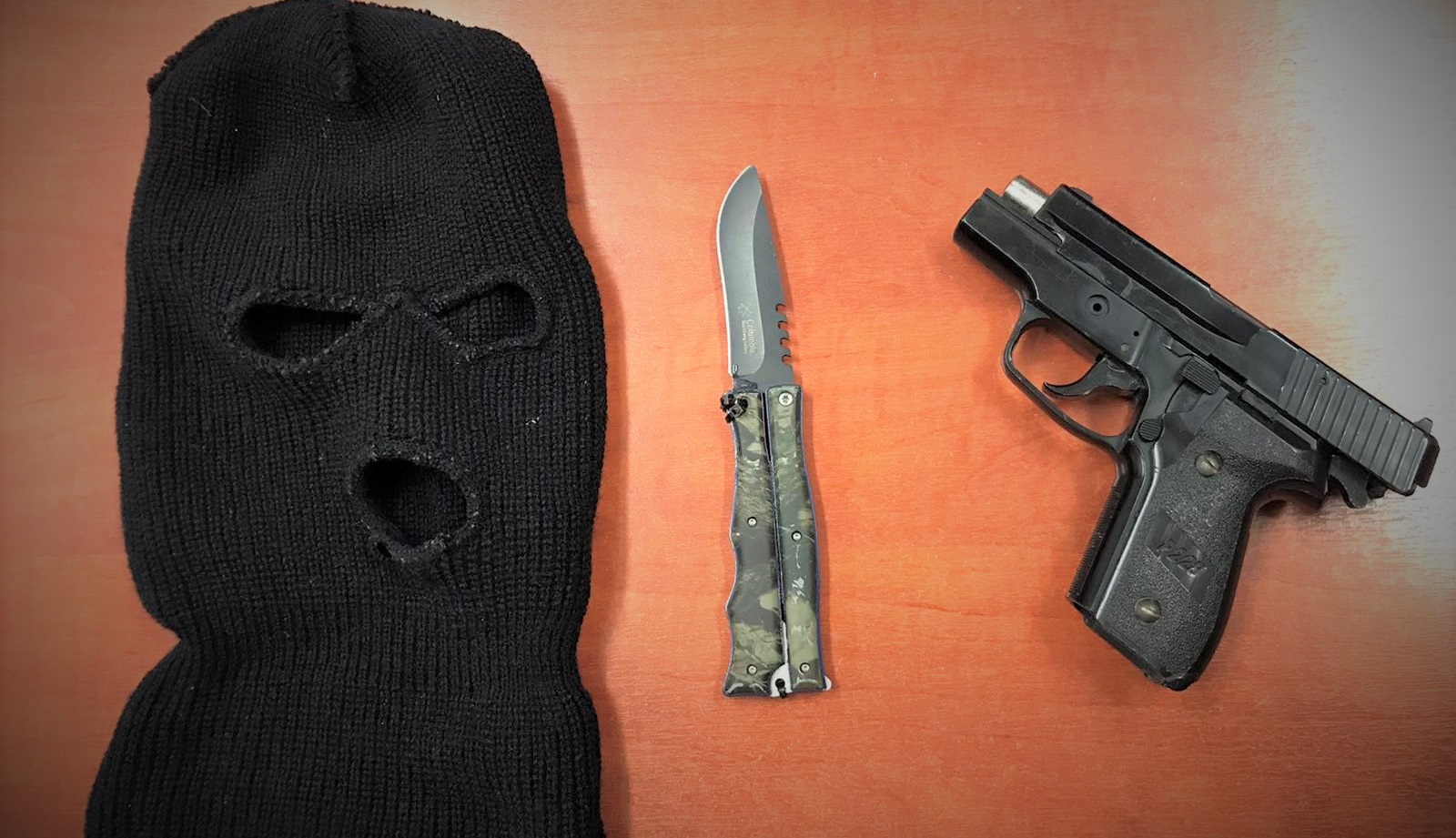 Σε οικόπεδο που υπέδειξε ο κατηγορούμενος στους αστυνομικούς και όπου τα είχε απορρίψει μετά τη διάπραξη της ληστείας, βρέθηκαν και κατασχέθηκαν:
