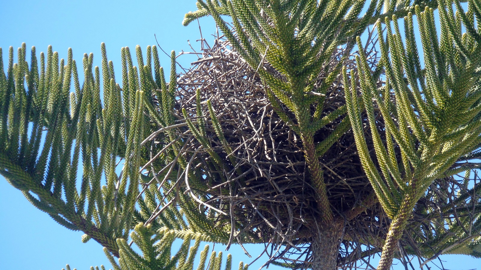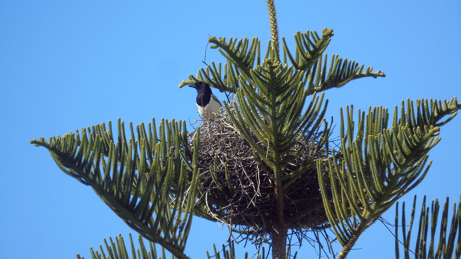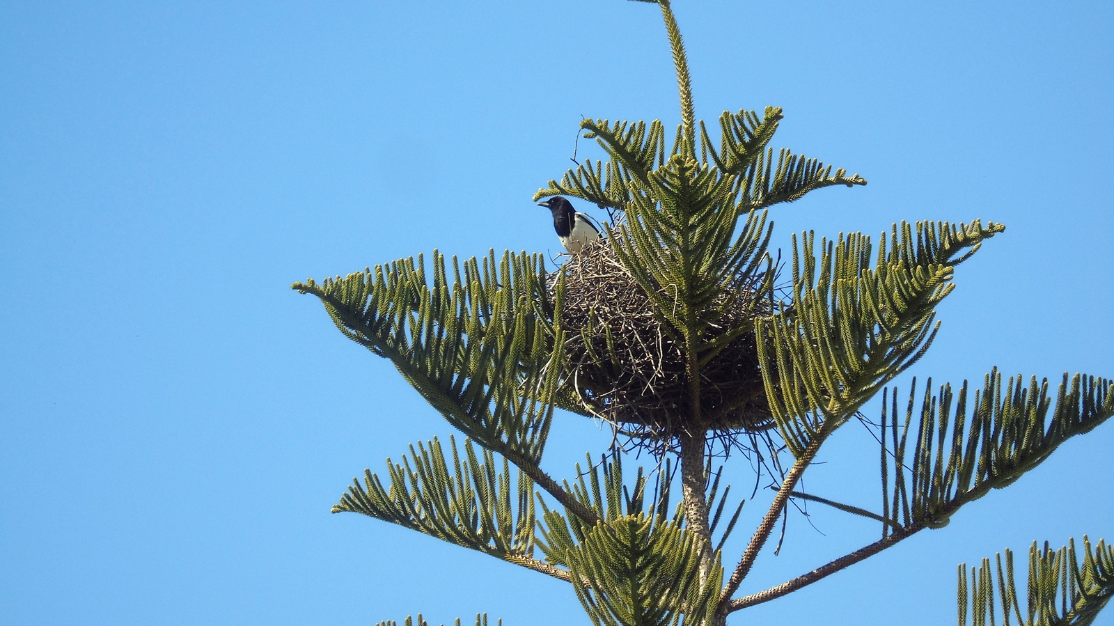 Μια καρακαξοφωλιά σε μια πανύψηλη Αρωκάρια