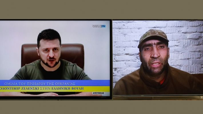 Οι μάσκες κυριολεκτικά έπεσαν, εκθέτοντας ανεπανόρθωτα την κυβέρνηση και τα άλλα κόμματα που συμμετείχαν σε αυτή την κακόγουστη φάρσα, όταν μαζί με τον Ουκρανό πρόεδρο πήρε τον λόγο ένας «ομογενής» ο οποίος «συμμετέχει στην άμυνα» της Μαριούπολης μέσα από το ναζιστικό Τάγμα Αζόφ, όπως ο ίδιος δήλωσε!