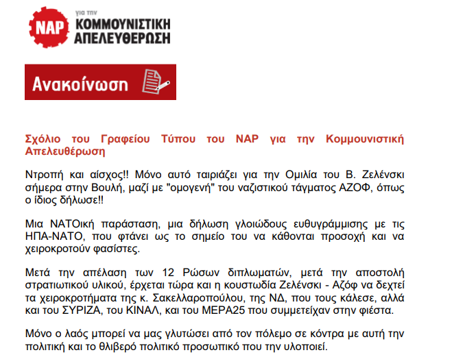 Ενδεικτική και συμβολικη η ανακοίνωση εδώ του ΝΑΡ, ώς ένα Κοινωνικό Εθνικό πατριωτικό ακόμη και υπαρξιακά εξατομικευμένο μετερίζι , με το οποίο οι ξεφωνημένοι για να καλύπτουν τους ωφελιμισμούς τους κυβερνητικοί βουλευτές , ώς δίκην εκπρόσωποι των πολιτών δεν εξυπηρετούνται.