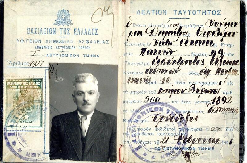 Ταυτότητα του Δημήτρη Κούκουρα στην περίοδο της Κατοχής (Πηγή: Αρχείο ΚΚΕ)
