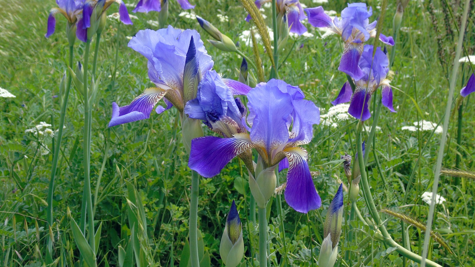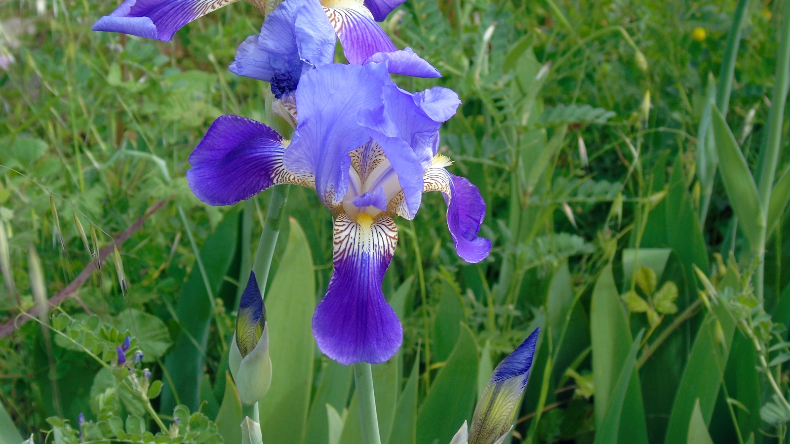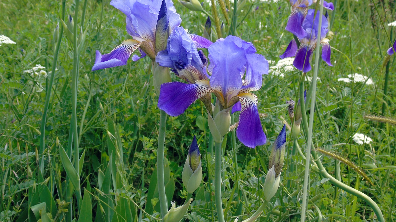 Τις φωτογραφήσαμε την Πρωτομαγιά στους Καρυώτες, άλλα τις έχουμε δει και σε άλλα χωριά της Λευκάδας, όπως π.χ. στον Βουρνικά. Ίσως η ποικιλία να είναι η Ίρις η γερμανική (Iris germanica), φυτό καλλιεργούμενο ή ημιαυτοφυές σε όλη την Ελλάδα με μεγάλα εύοσμα και κυανά άνθη γνωστότερο με το όνομα γαλάζιος κρίνος.