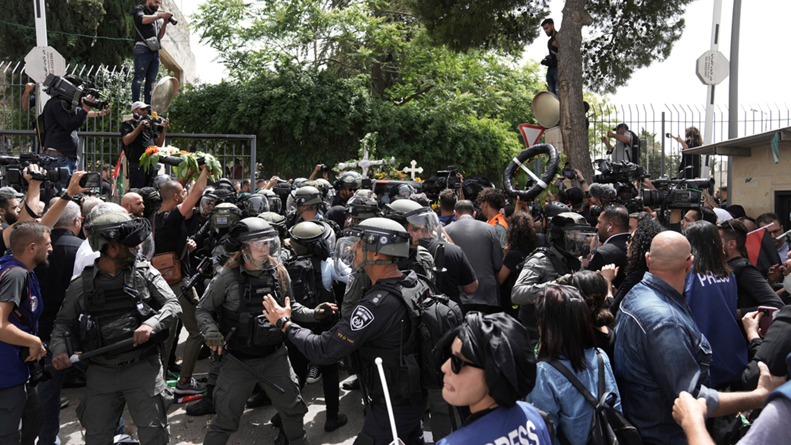 Η ισραηλινή αστυνομία επιτέθηκε σήμερα στη νεκρική αυτοκινητοπομπή της δολοφονημένης από ισραηλινά πυρά δημοσιογράφου του «Al Jazeera», Σιρίν Αμπού Ακλέχ, την ώρα που οι Παλαιστίνιοι μετέφεραν το φέρετρο προς την εκκλησία όπου θα γινόταν η νεκρώσιμη ακολουθία.