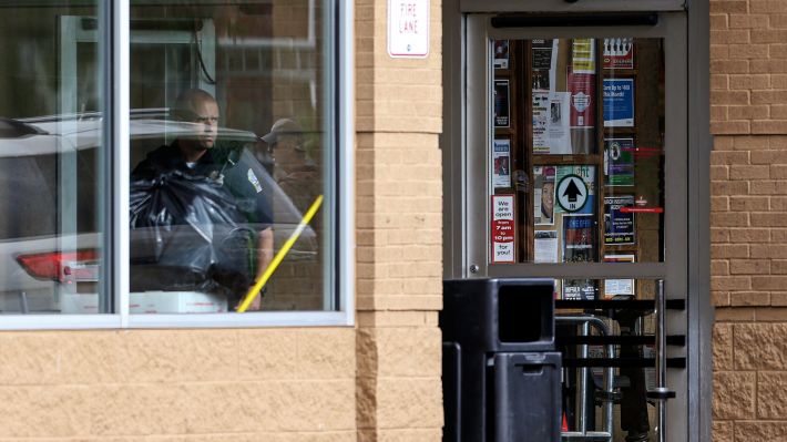 Ο ρατσιστής μακελάρης πυροβόλησε και σκότωσε τρεις ανθρώπους στον χώρο στάθμευσης, προτού ανταλλάξει πυρά με έναν πρώην αστυνομικό που εργαζόταν ως φύλακας του καταστήματος. Ωστόσο, ο δράστης προστατεύτηκε από το αλεξίσφαιρο γιλέκο που φορούσε. Ο φύλακας ήταν ένας από τους δέκα ανθρώπους που σκότωσε, ενώ οι άλλοι εννέα ήταν πελάτες του καταστήματος. Οι τρεις τραυματίες είναι υπάλληλοι του καταστήματος, των οποίων η ζωή δεν φαίνεται να διατρέχει κίνδυνο, σύμφωνα με τις αρχές.