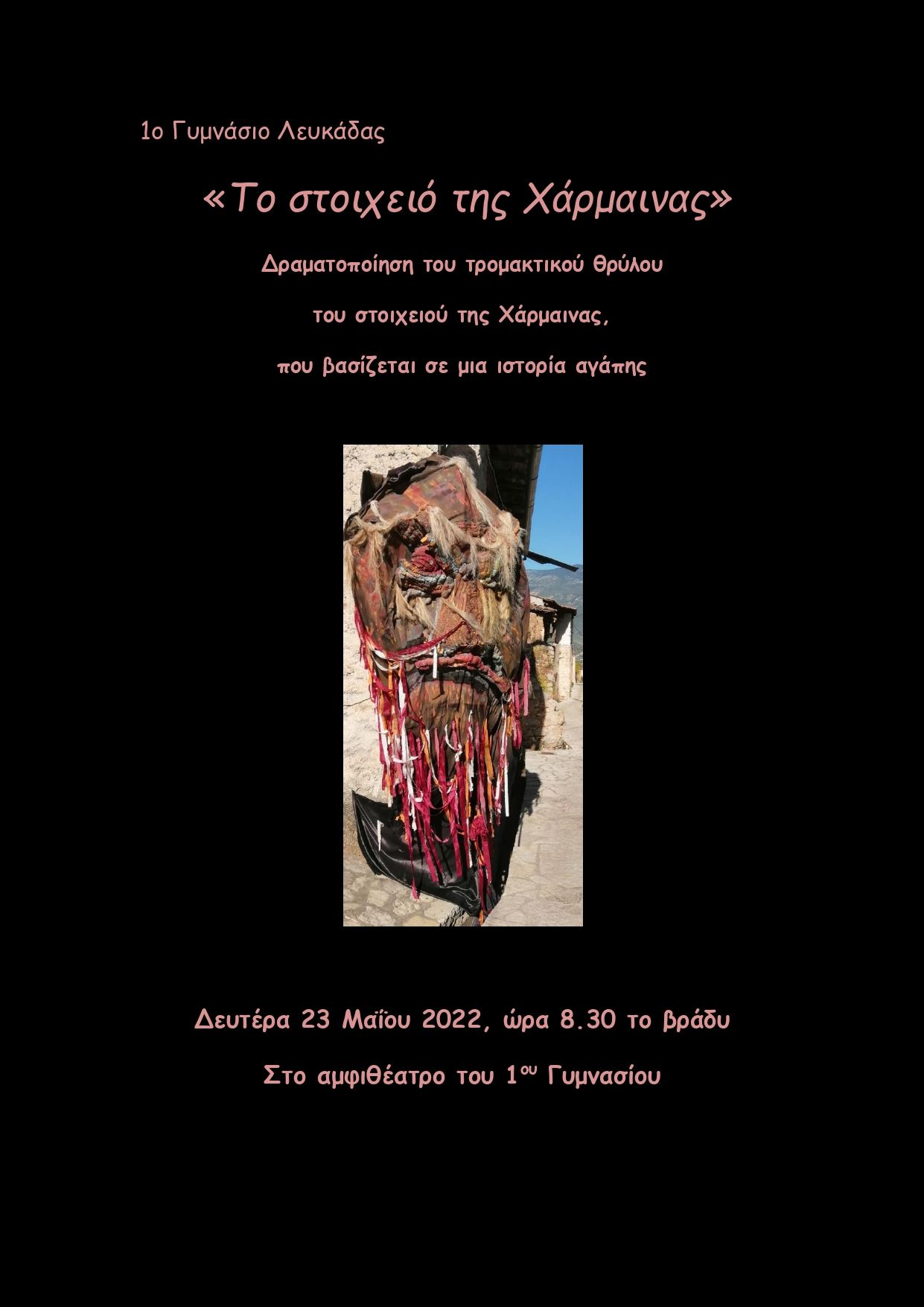 1ο Γυμνάσιο Λευκάδας: Πρόσκληση στην παράσταση της Β΄ τάξης «Το στοιχειό της Χάρμαινας»