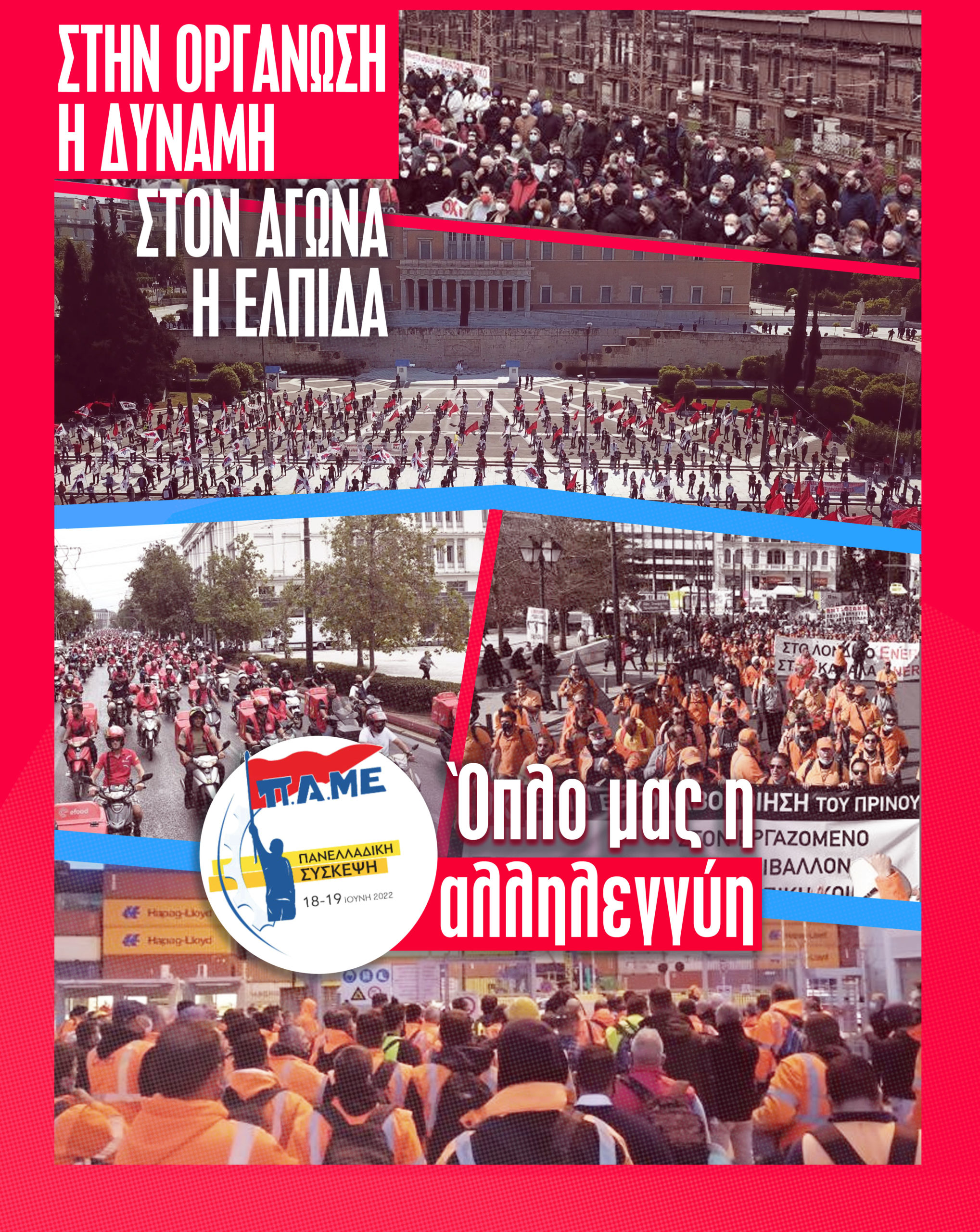 «Συνάδελφοι, στις 18 και 19 Ιουνίου στη Δραπετσώνα στον Πειραιά πραγματοποιείται μια μεγάλη πανελλαδική σύσκεψη μετά από κάλεσμα του Πανεργατικού Αγωνιστικού Μετώπου (ΠΑΜΕ).