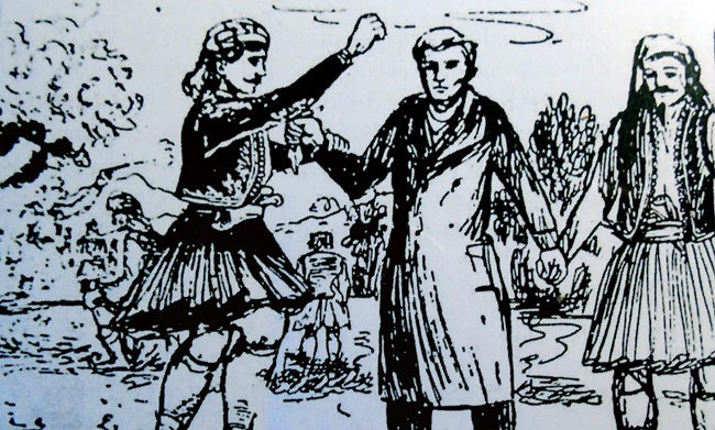 kapodistrias_magemenouΣτο γλέντι της Λευκάδας, ο Καποδίστριας κρατάει τον Κατσαντώνη που σέρνει πρώτος το χορό