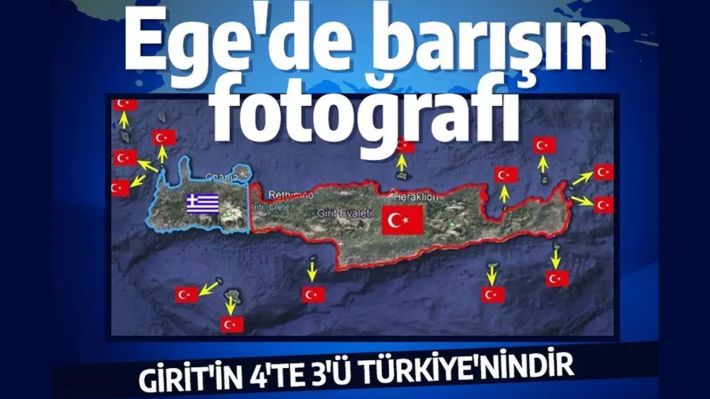 Μετά την δημοσιοποίηση του χάρτη των «Γκρίζων Λύκων», που έδειχνε το μισό Αιγαίο και ολόκληρη την Κρήτη ως τουρκικά, μέσα ενημέρωσης της γειτονικής χώρας αναπαράγουν χάρτη που θέλουν τα 3/4 της Κρήτης υπό τουρκική κυριαρχία, με μόνο τα Χανιά να είναι ελληνικά…